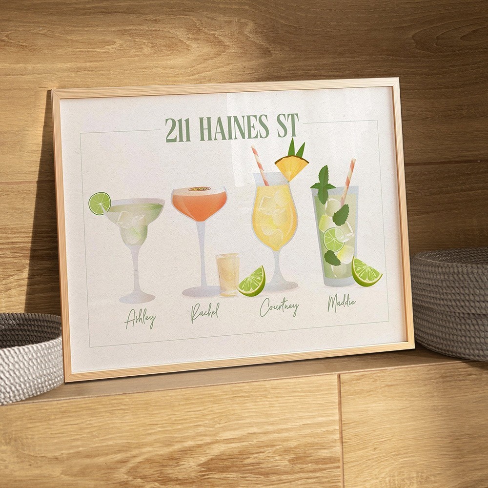 Personalised Roommates Drinks Art Print Frame with Names College Apartment Dorm Art Unique Gifts for Friends