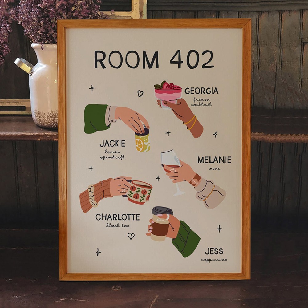 Personalised Roommates Drinks Art Print Frame with Names College Apartment Dorm Art Unique Gifts for Friends