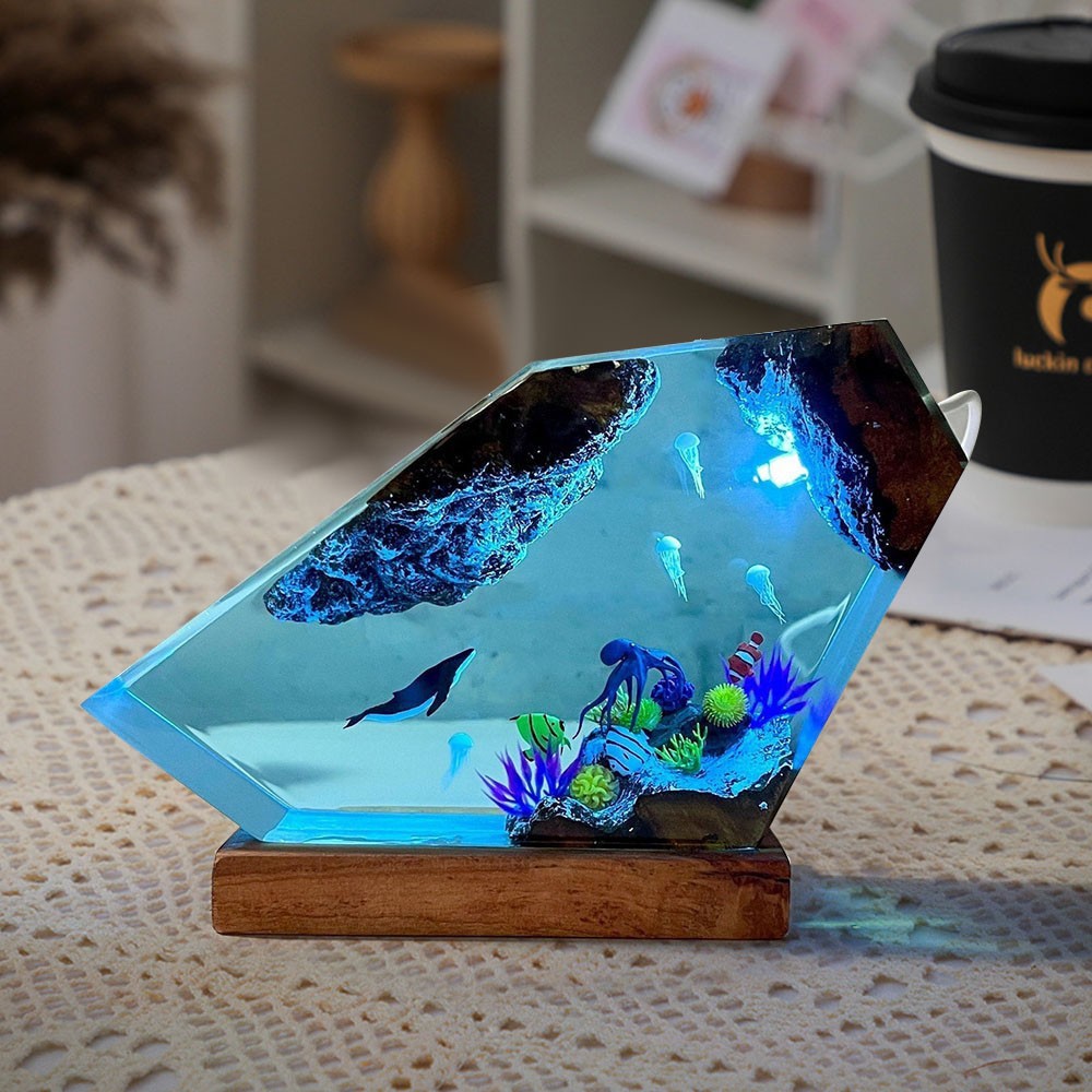 Humpback Whale &Jellyfish Resin Wood Lamp Night Light Christmas Gift Birthday Gift Ideas