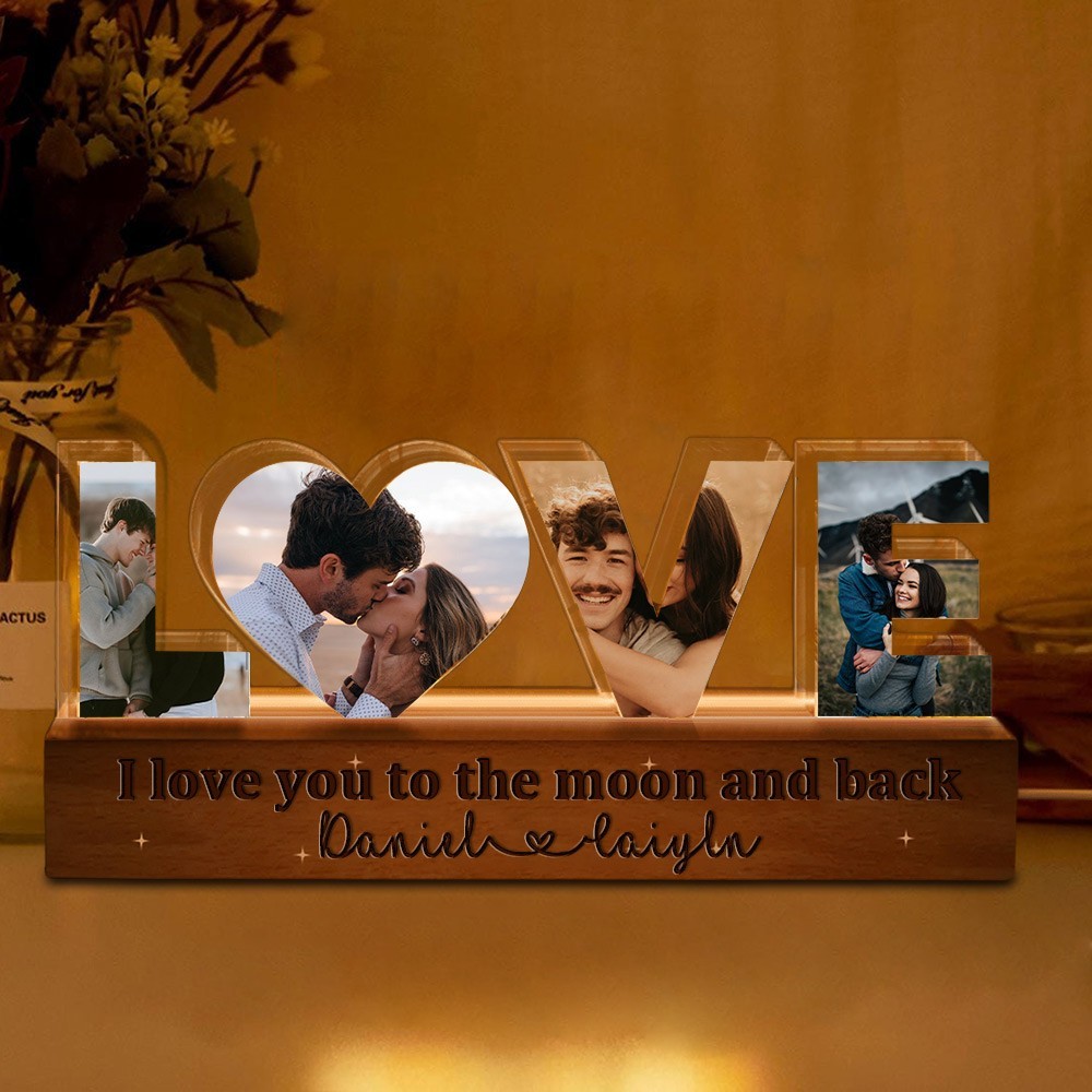 I Love You To The Moon and Back Photo Collage Night Light Custom Couples Gift Anniversary Gifts Valentine's Day Gift for Her Him