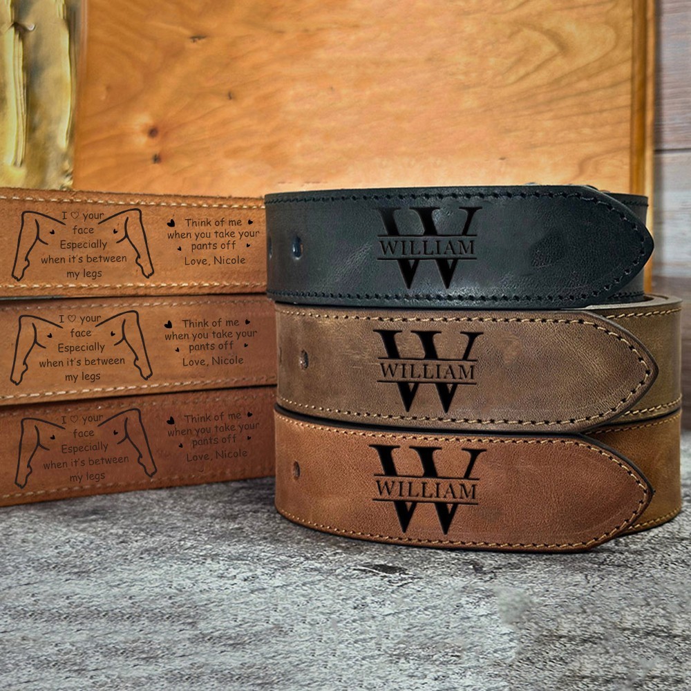 I Love Your Face Especially When It's Between My Legs Custom Engraved Leather Belt Valentine's Day Gift for Boyfriend Husband