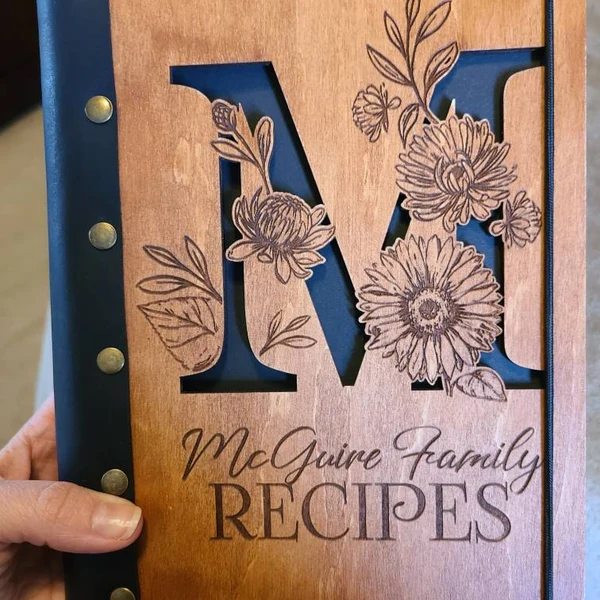 Leather Bound Recipe Book Blank Binder Personalised Wooden Cover Notebook Keepsake Gift Christmas Gifts for Mum