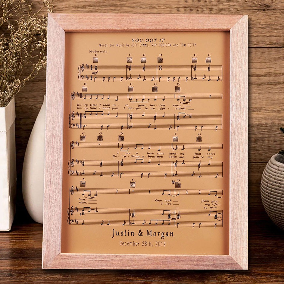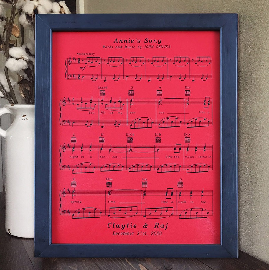 Leather Engraved Sheet Music Personalised Framed Music Notes 3rd Wedding Anniversary Gifts for Wife Christmas Gift
