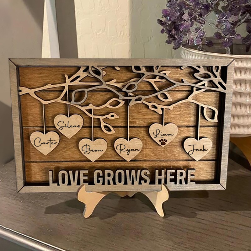 Love Grows Here Wooden Family Tree Sign Personalised Gifts for Mum Grandma Mother's Day Gifts