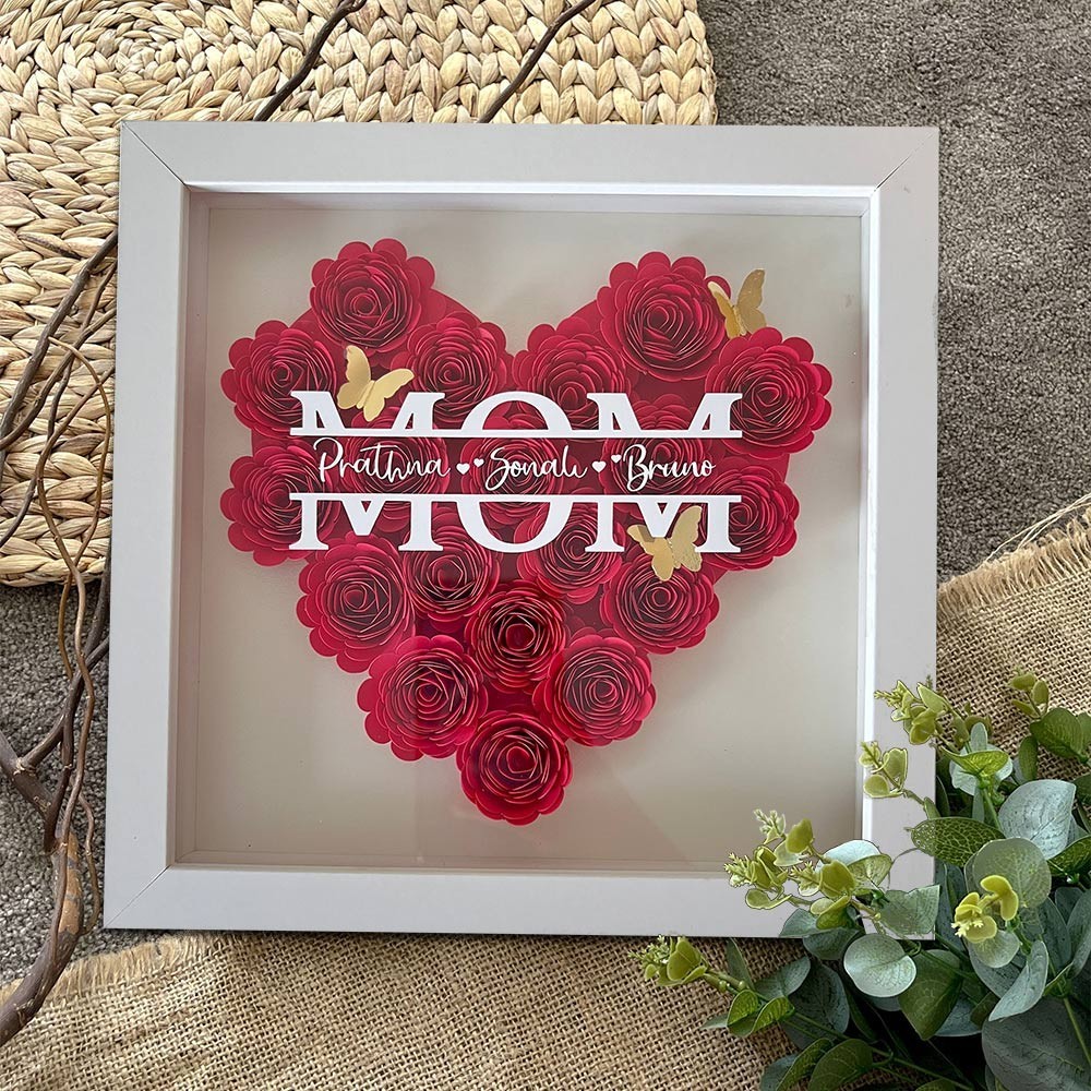 Mum Butterfly Flower Shadow Box with Kids Names Custom Gifts for Mum Grandma Mother's Day Gift