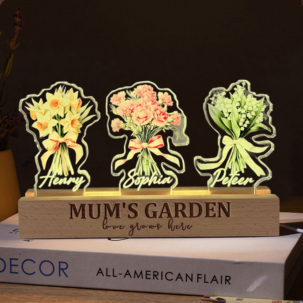 Mum's Garden Custom Birth Month Flower Bouquet Night Light with Kids Names for Mum Mother's Day Gift Ideas