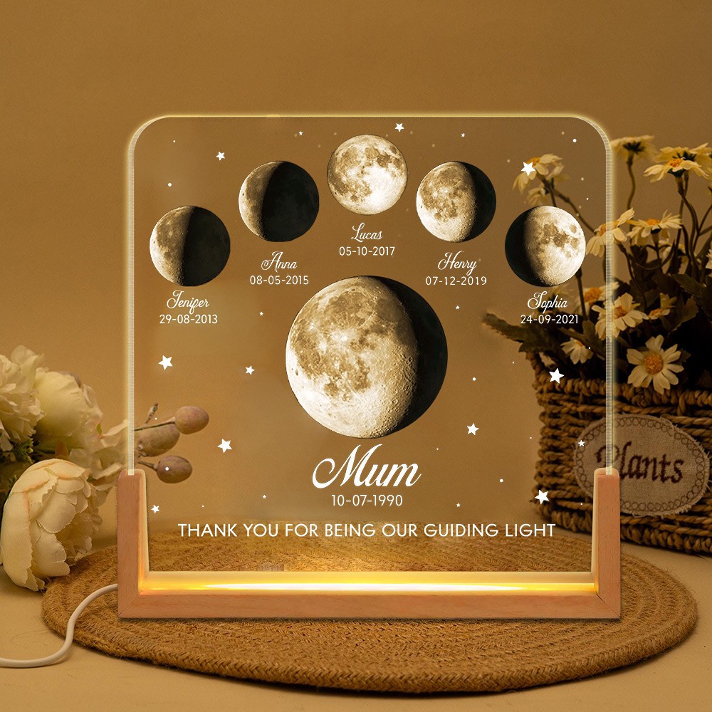Mum Thank You For Being Our Guiding Light Custom Moon Phase Night Light with Kids Names Gifts for Mum Mother's Day Gift