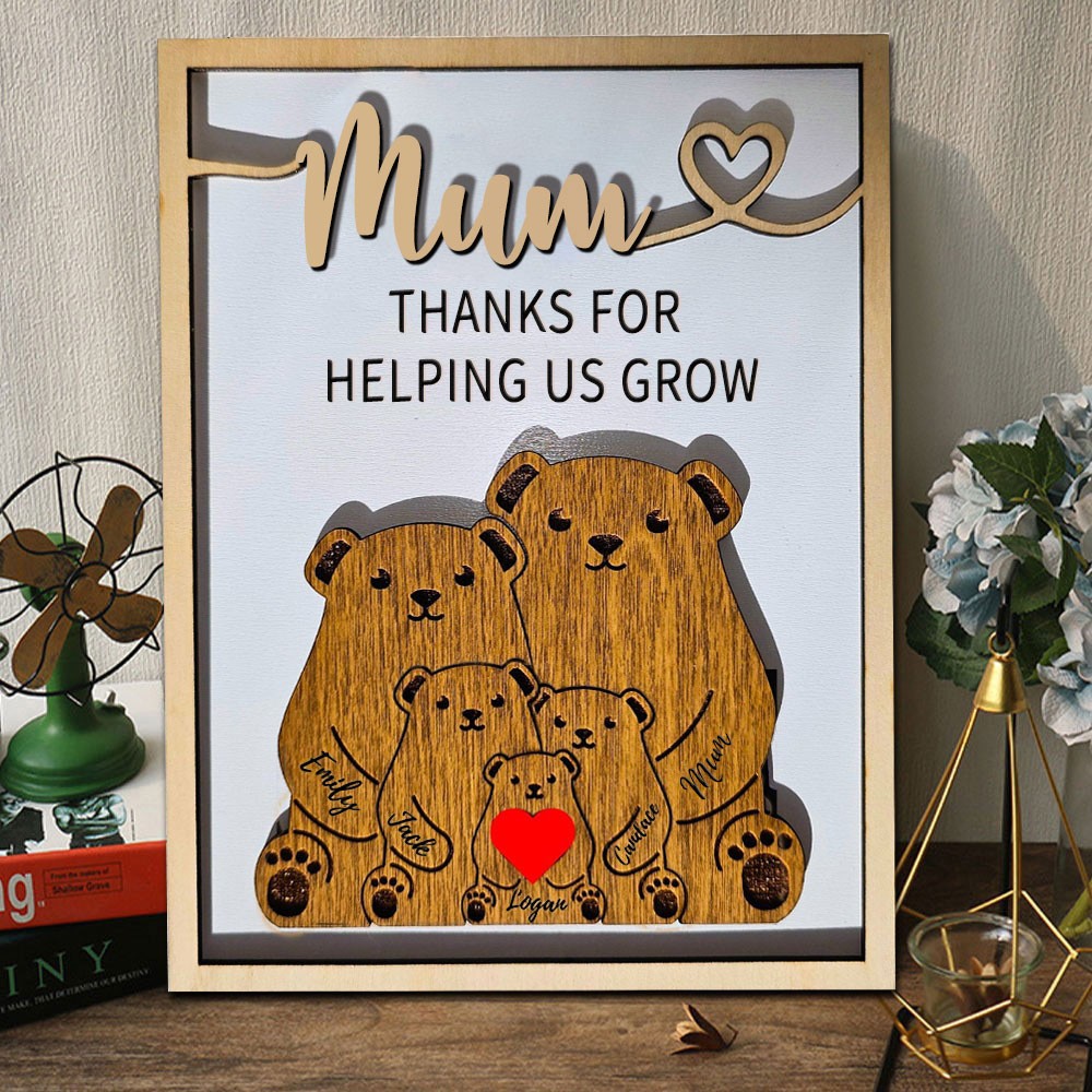 Mum Thanks For Helping Us Grow Personalised Wooden Bear Puzzle Name Sign Keepsake Gifts for Mum Mother's Day Gift