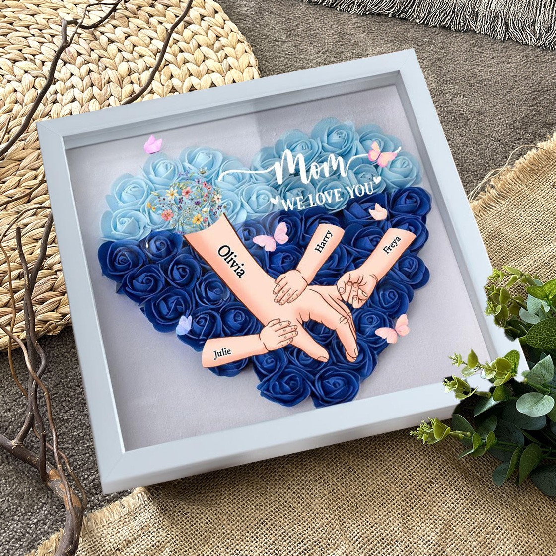 Mum We Love You Holding Hands Heart Flower Shadow Box with Kids Names Personalised Gifts for Mum Mother's Day Gift Ideas