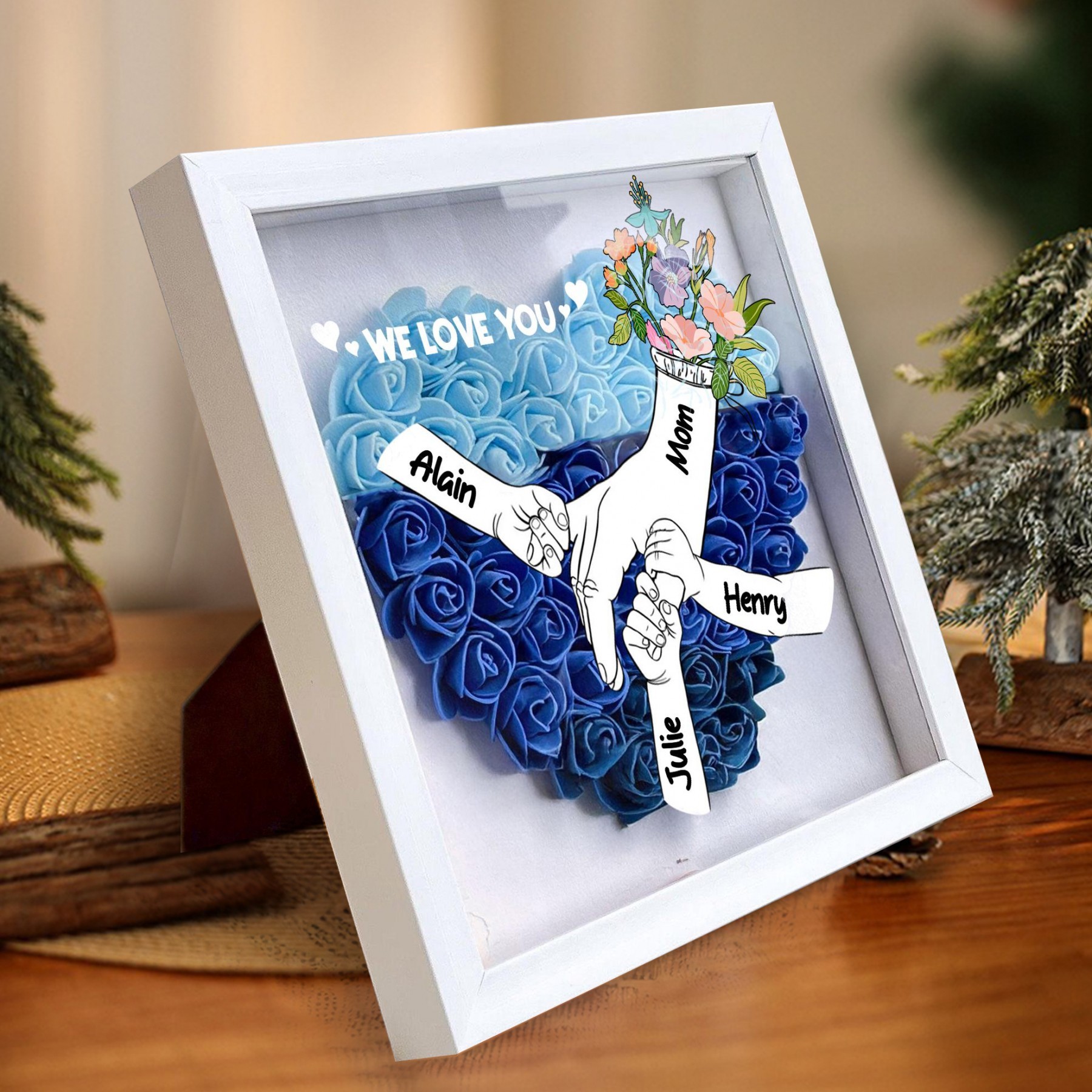Mum We Love You Holding Hands Heart Flower Shadow Box with Kids Names Personalised Gifts for Mum Mother's Day Gift Ideas