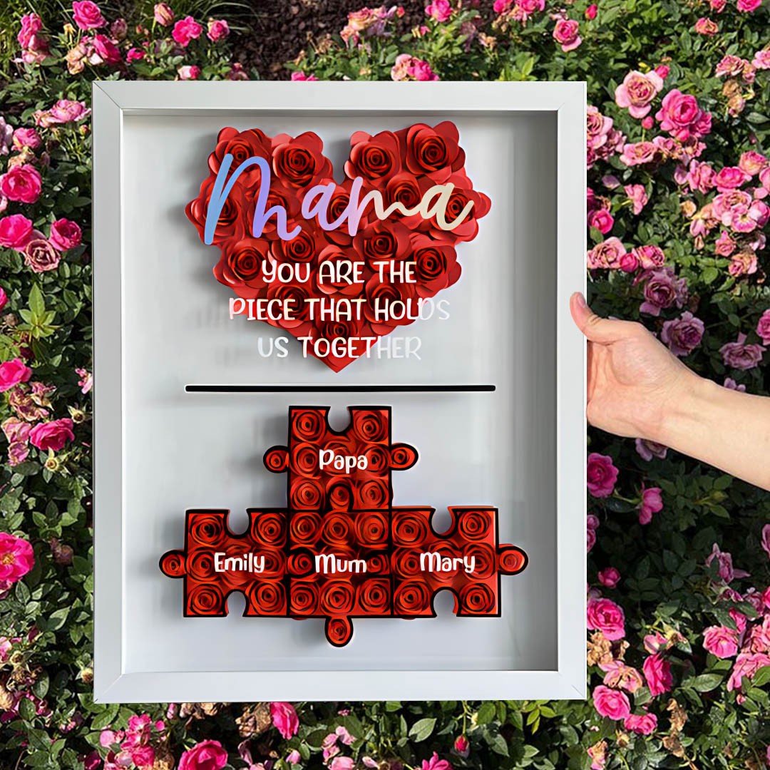 Mum You Are The Piece That Holds Us Together Custom Jigsaw Puzzle Flower Shadow Box Gifts for Mum Mother's Day Gift
