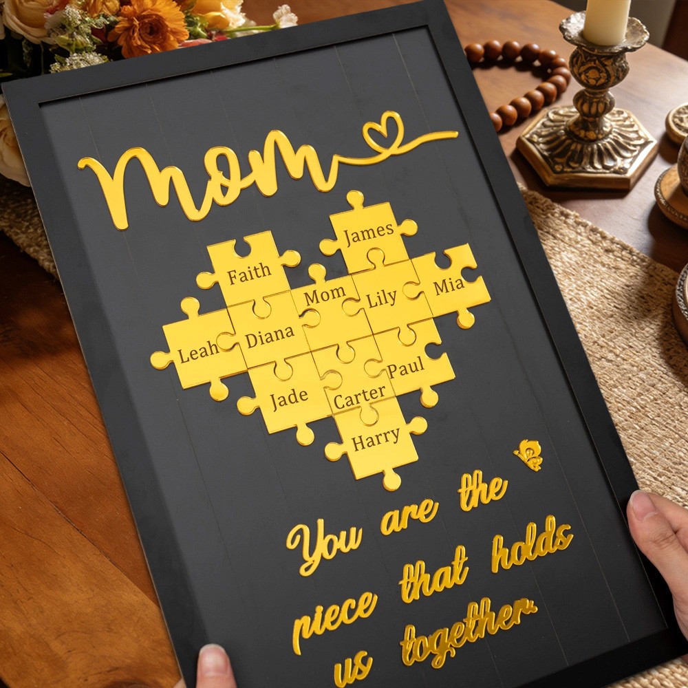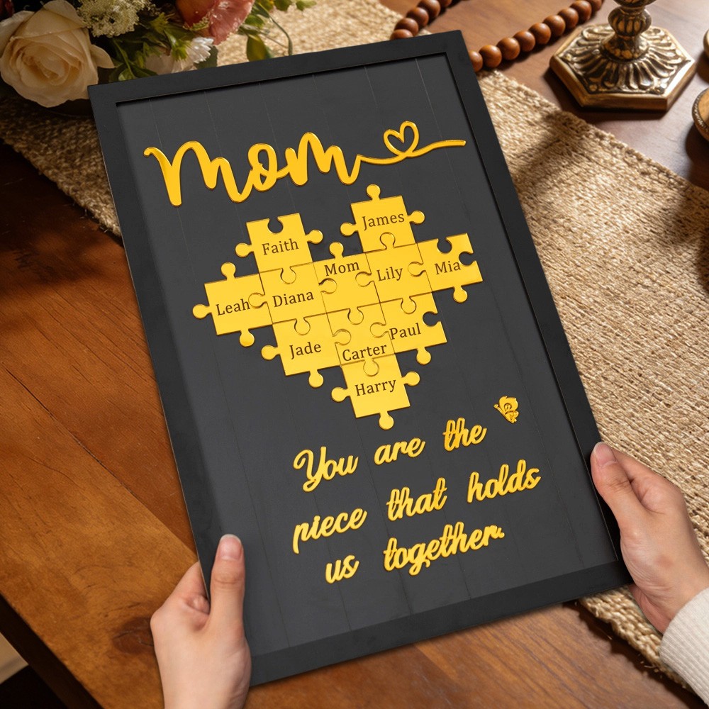 Mum You Are The Piece That Holds Us Together Personalised Mum Puzzle Piece Name Sign with Kids Names Gifts for Mum Mother's Day Gift