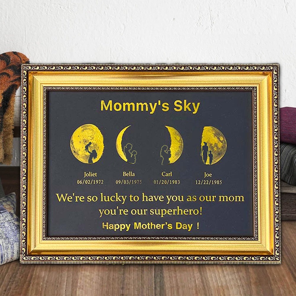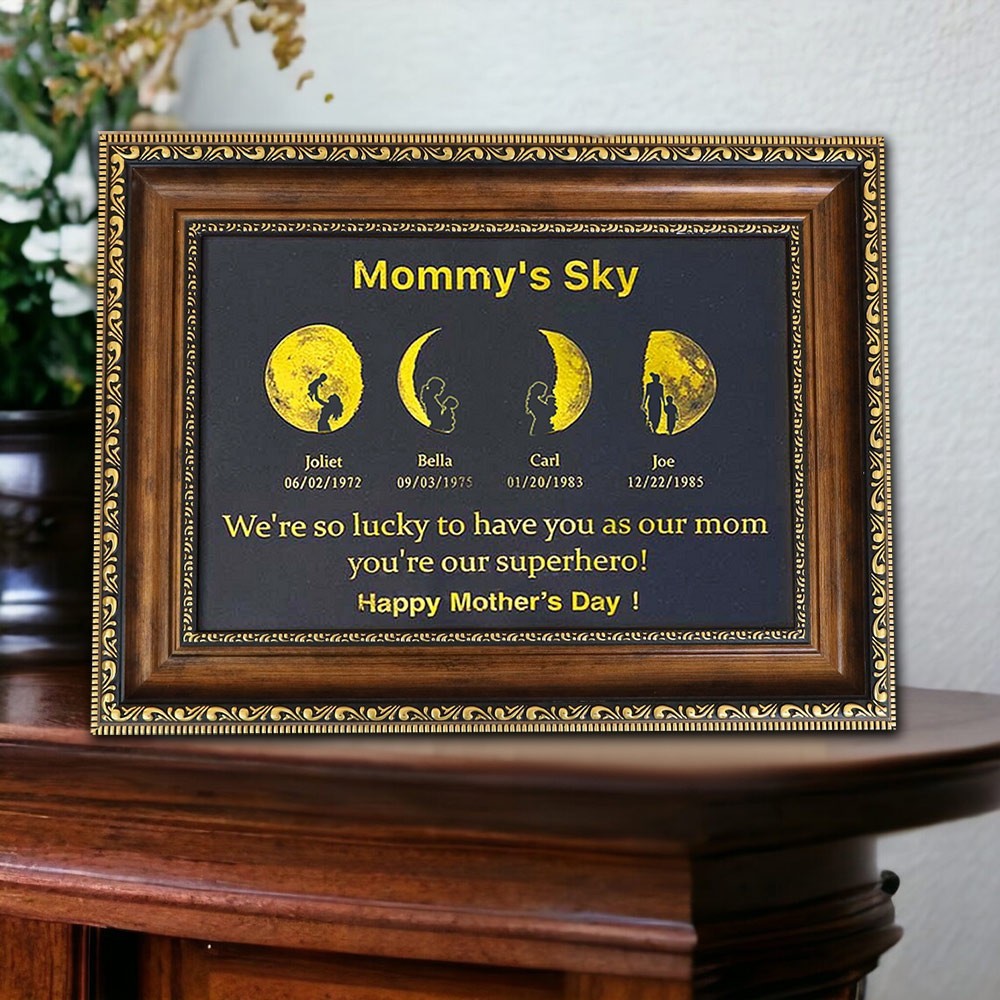 Mummy's Sky Moon Phase Print Frame with Kids Names Personalised Gifts for Mum Grandma Mother's Day Gift Ideas