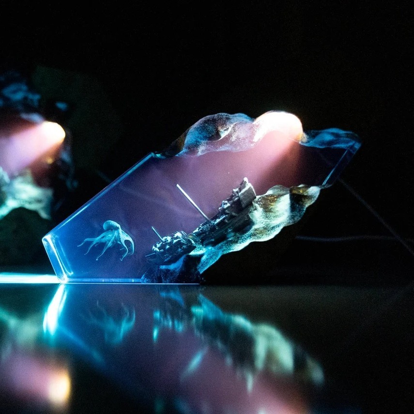 Octopus Shipwreck Night Light Resin Wood Lamp Blue Ocean Miniature Christmas Gift Birthday Gift Ideas
