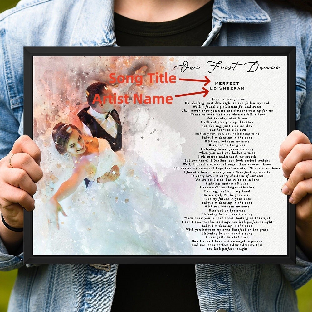 Our First Dance Custom Wedding Song Lyrics Frame from Photo for Couples 1st Anniversary Gift for Husband Wife