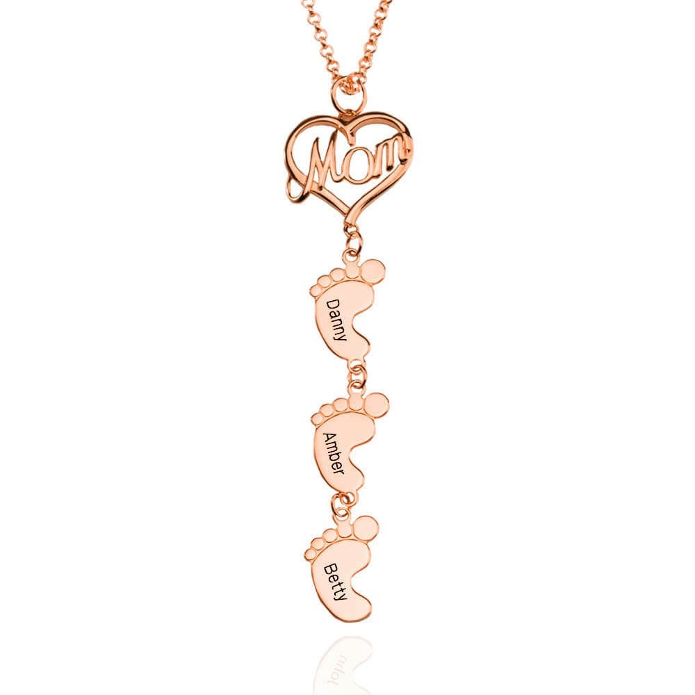Personalised 1-10 Baby Feet Mum Necklace With Kids Names Unique Gift For Mum Grandma Mother's Day Gift
