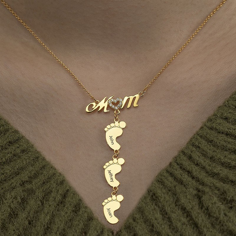 Personalised 1-10 Engraved Name Baby Feet Pendants Mum Necklace Family Gift For Mum Grandma
