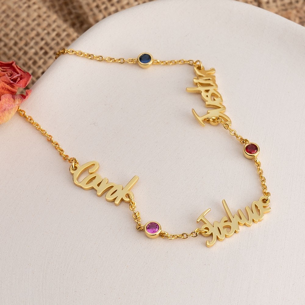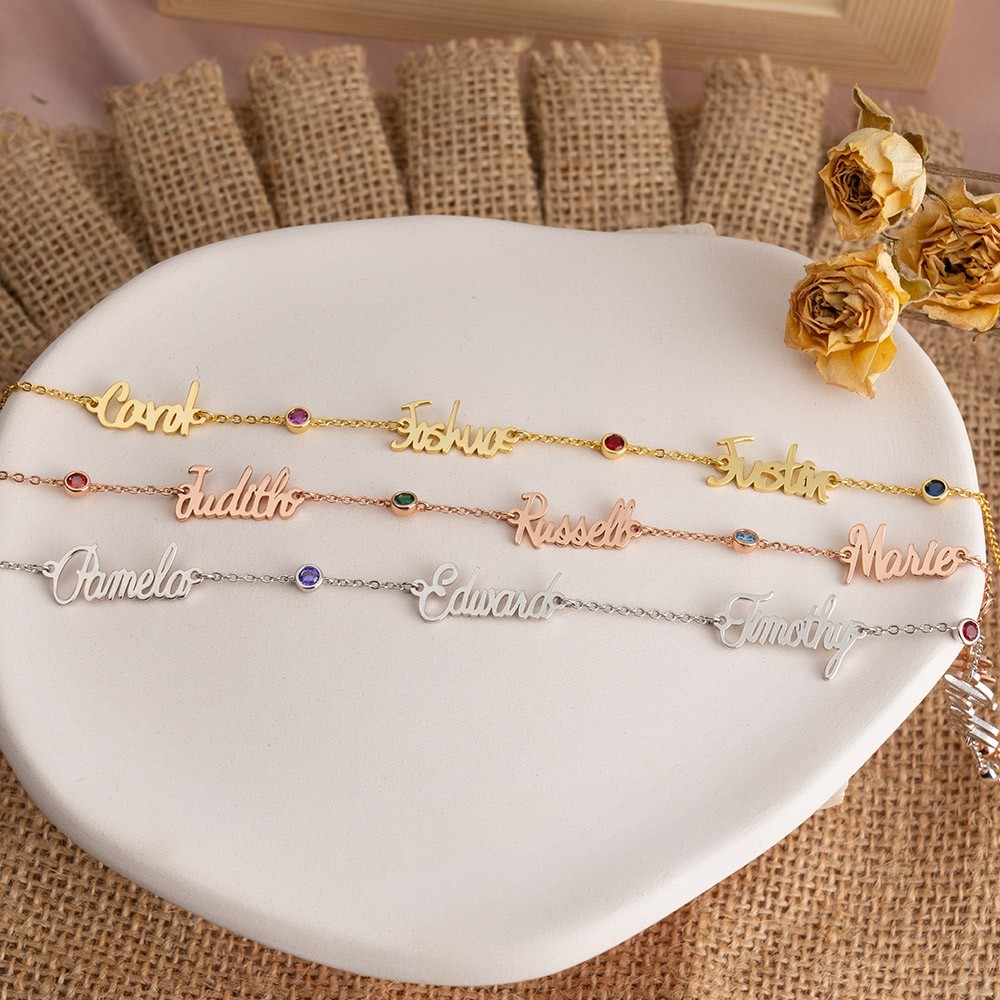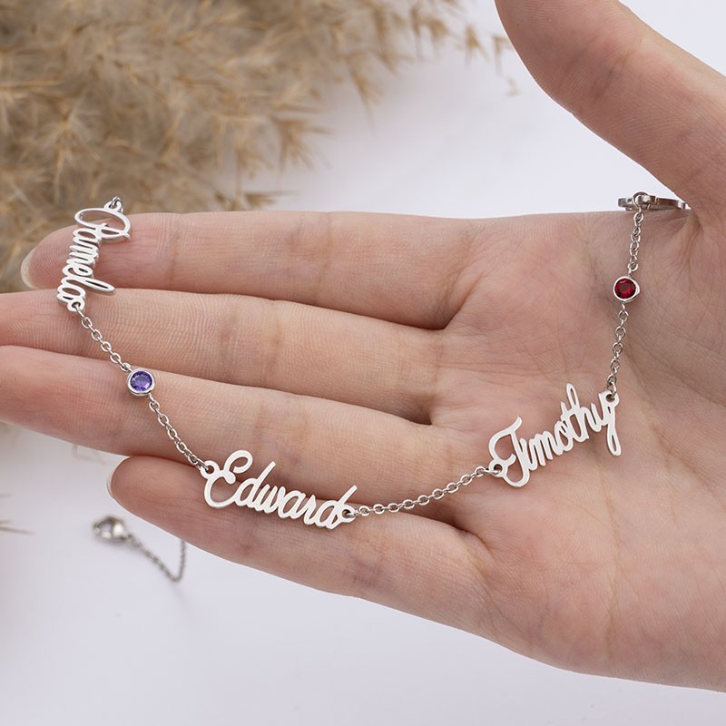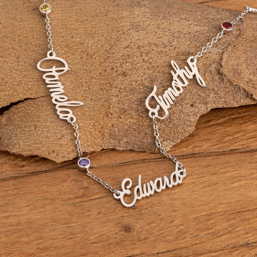 Personalised 1-6 Names and Birthstones Necklace Unique Family Keepsake Gift For Mum Grandma Christmas Day Gifts
