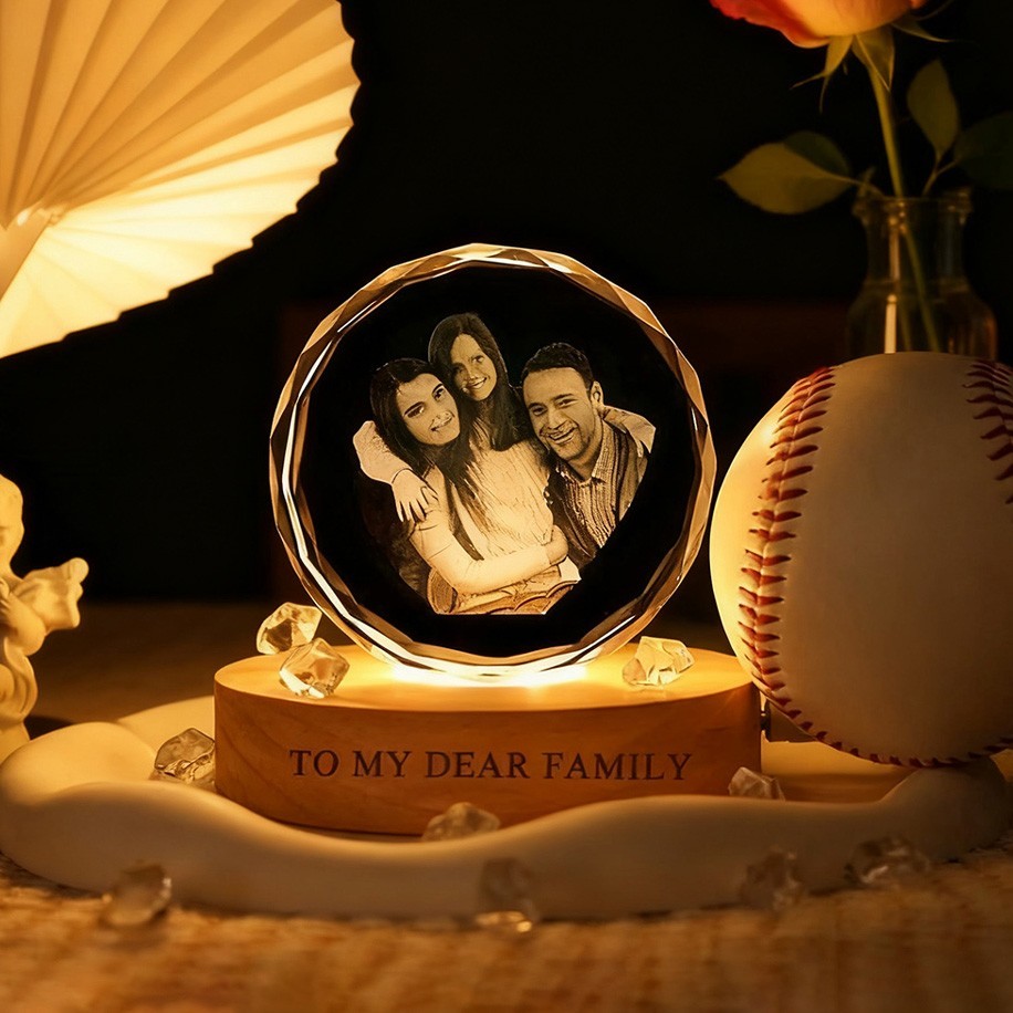 Personalised 3D Crystal Family Photo Portrait Night Light with Base Unique Family Gift Christmas Gifts