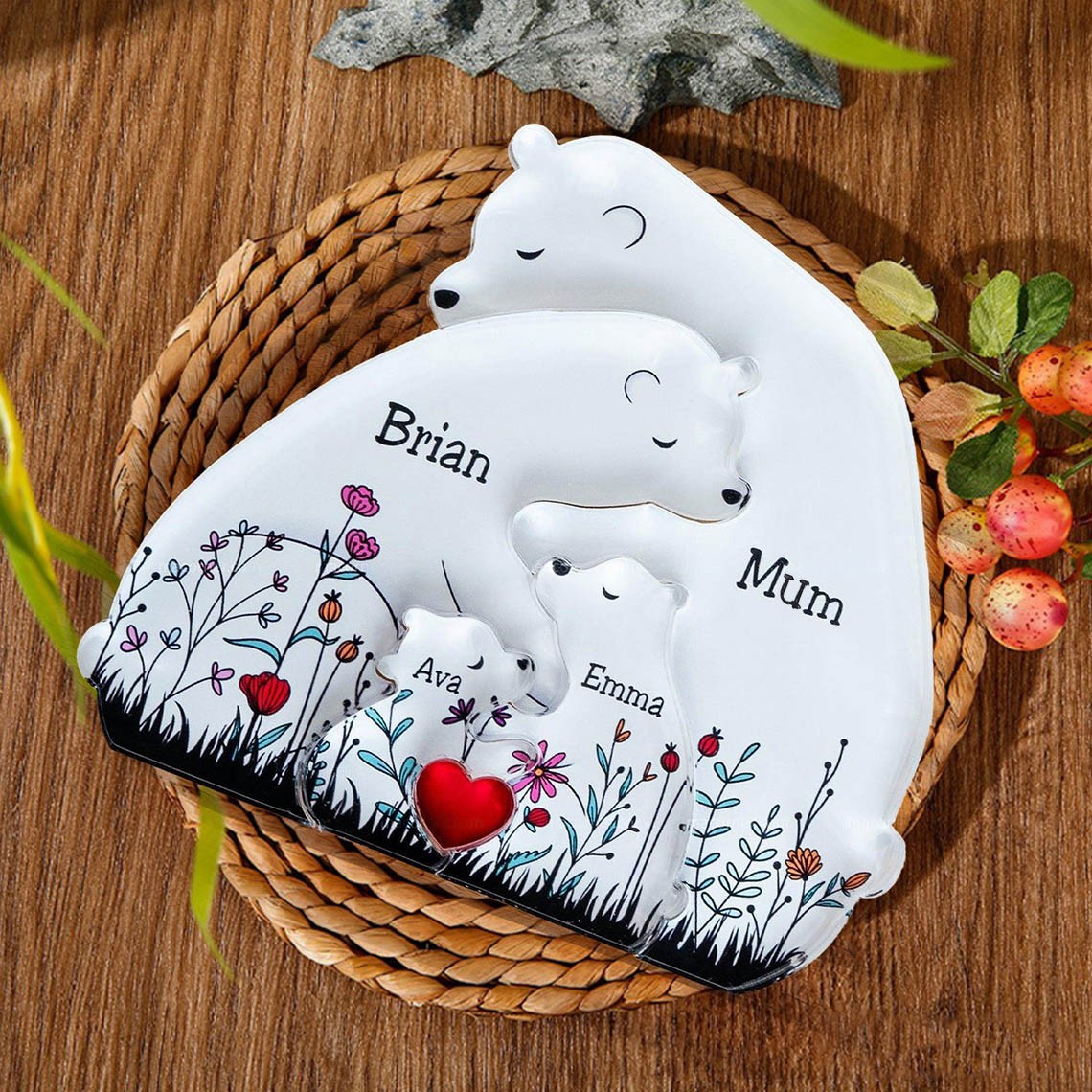 Personalised Acrylic Hugging Bear Family Puzzle with Kids Names Unique Gifts for Mum Grandma Mother's Day Gift Ideas