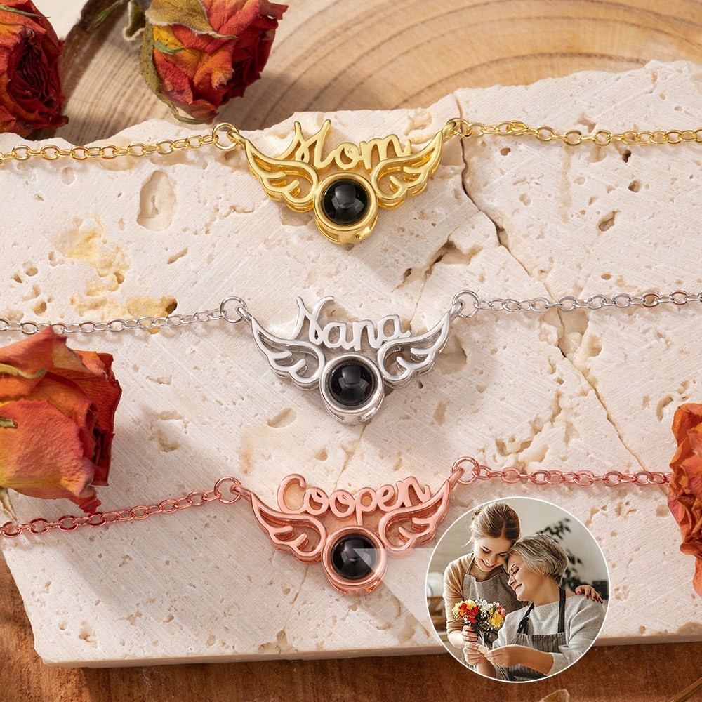 Personalised Angel Photo Projection Charm Necklace Memorial Gift for Mum