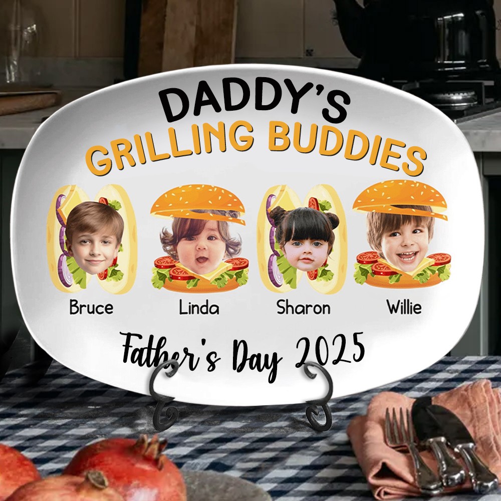 Personalised Art Print Daddy's Grilling Buddies Plate with Kids Portraits And Names Custom Plate Keepsake Gift For Dad Unique Father's Day Gift Ideas