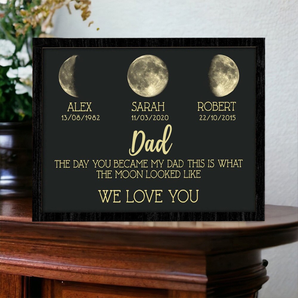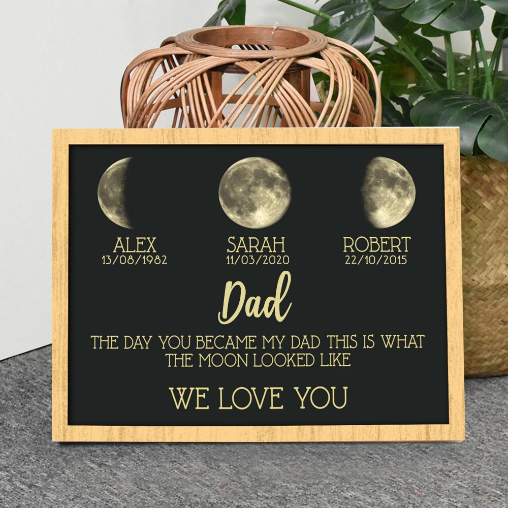 Personalised Art Print Family Wooden Moon Phase Frame Sign With Kids Names Unique Family Gifts Father's Day Gift Ideas