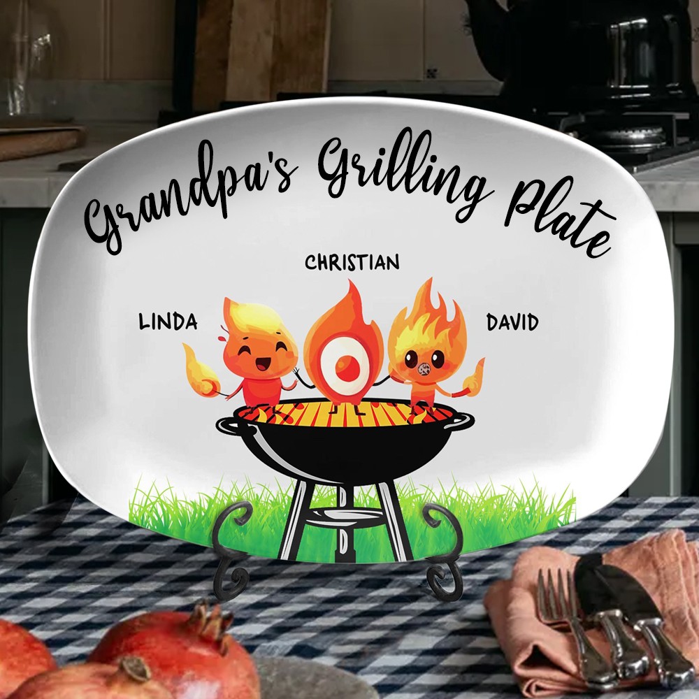 Personalised Art Print Grandpa's Grilling Plate Custom BBQ Plate With Kids Names Family Gift For Grandad Unique Father's Day Gift Ideas