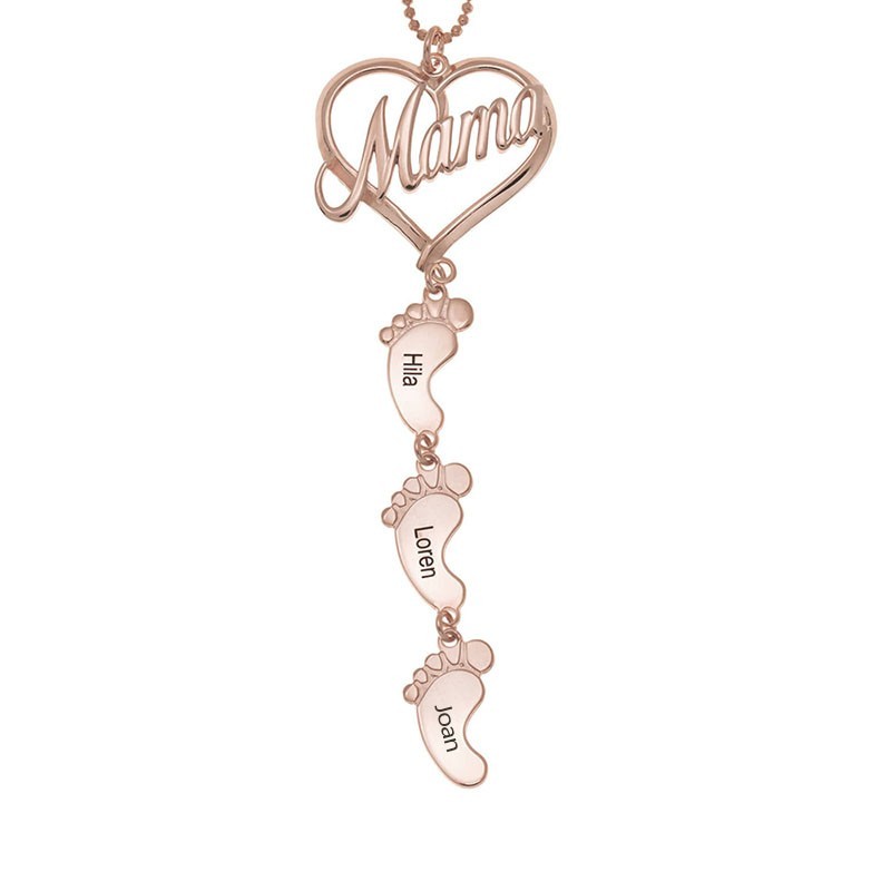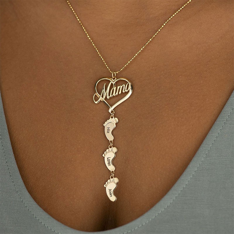 Personalised Baby Feet Pendant Names Necklace Family Keepsake Gift For Mum Grandma