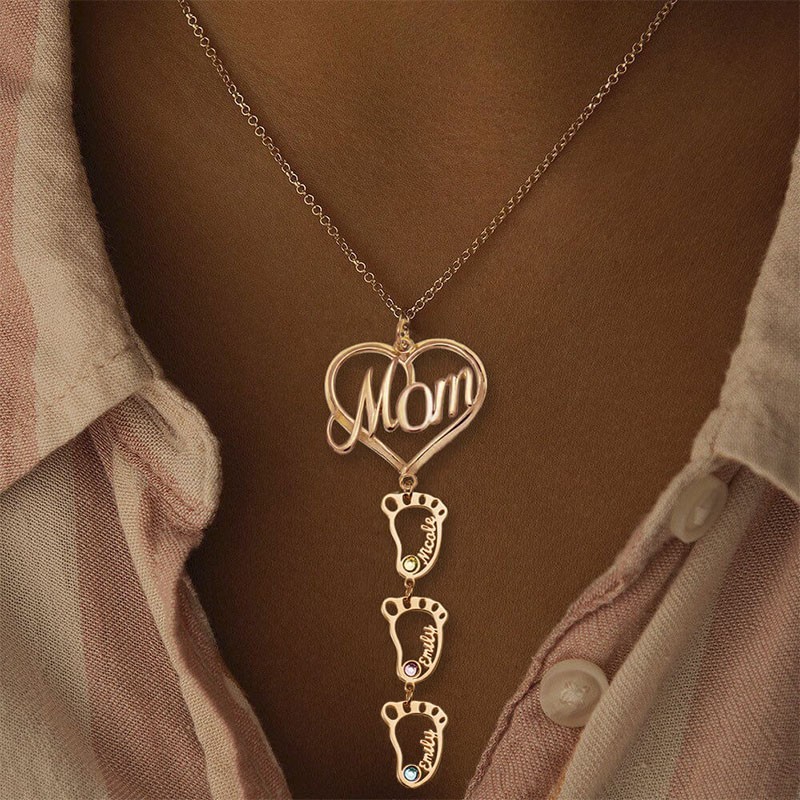 Personalised Baby Feet Pendants Mum Birthstone Necklace With Engraved Name Mother's Day Gift Ideas