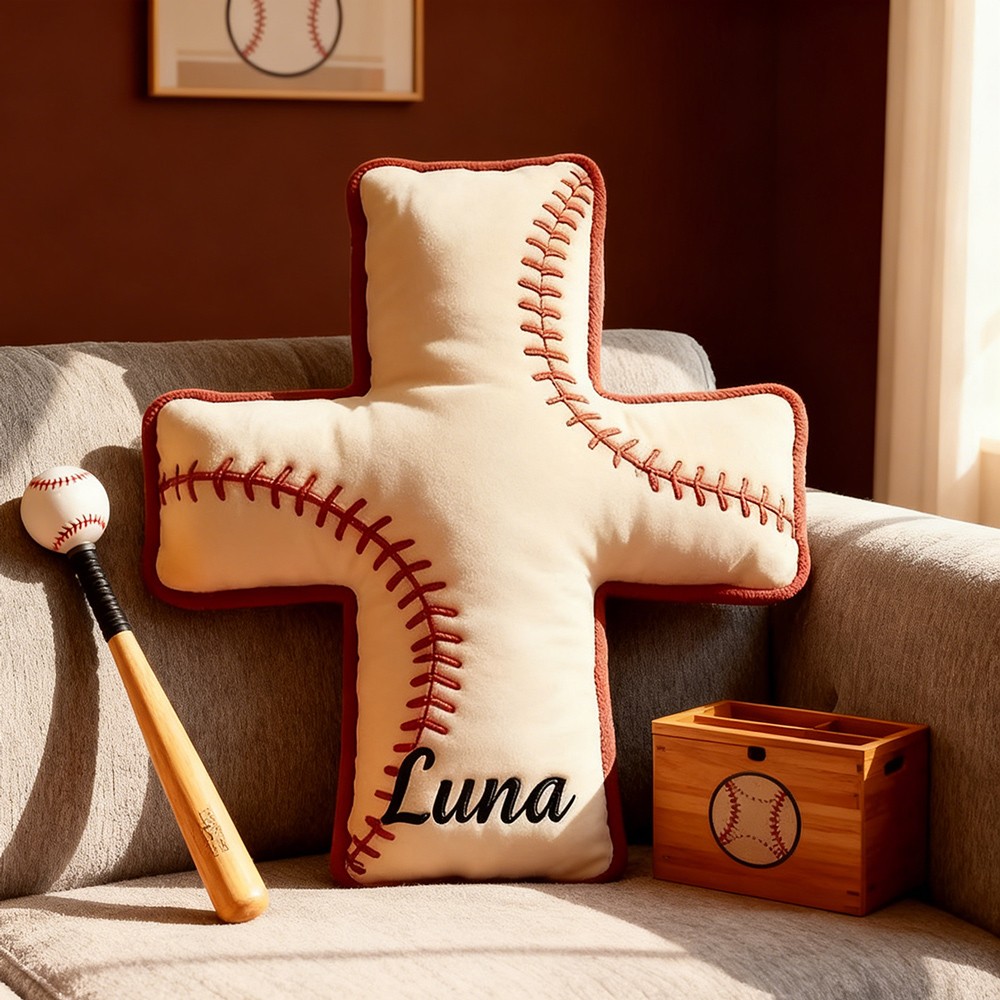 Personalised Baseball Cross Pillow with Custom Name Baseball Fans Gifts Christmas Gift for Baseball Lover