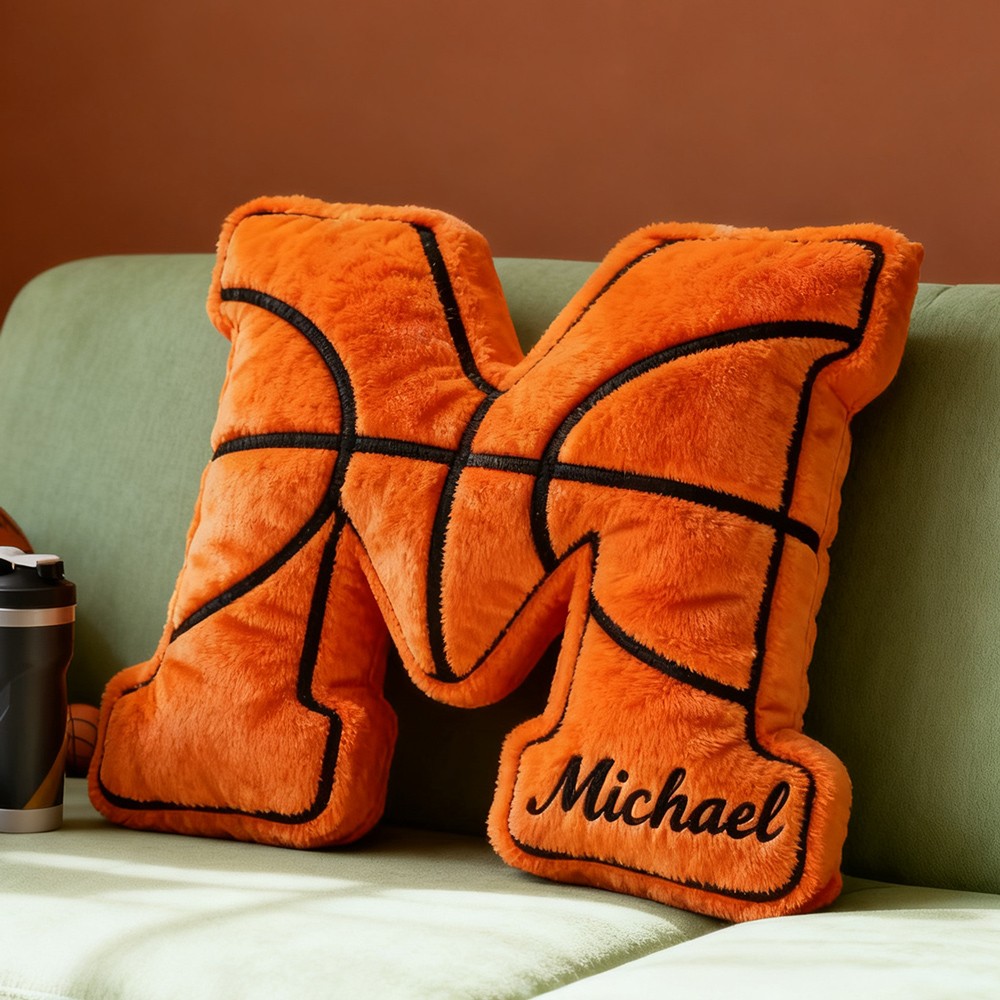 Personalised Basketball Themed Letter Shaped Pillow with Custom Name Basketball Fans Gifts Christmas Gift for Basketball Lover