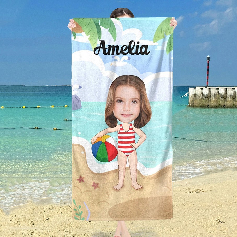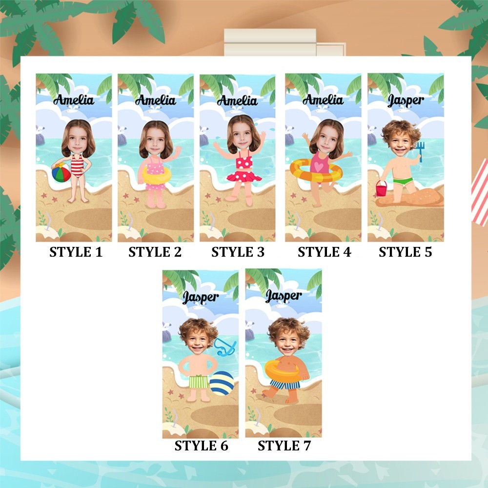 Personalised Beach Towel with Kid Face and Name Custom Summer Party Gift for Boys Girls Birthday Gift for Kids
