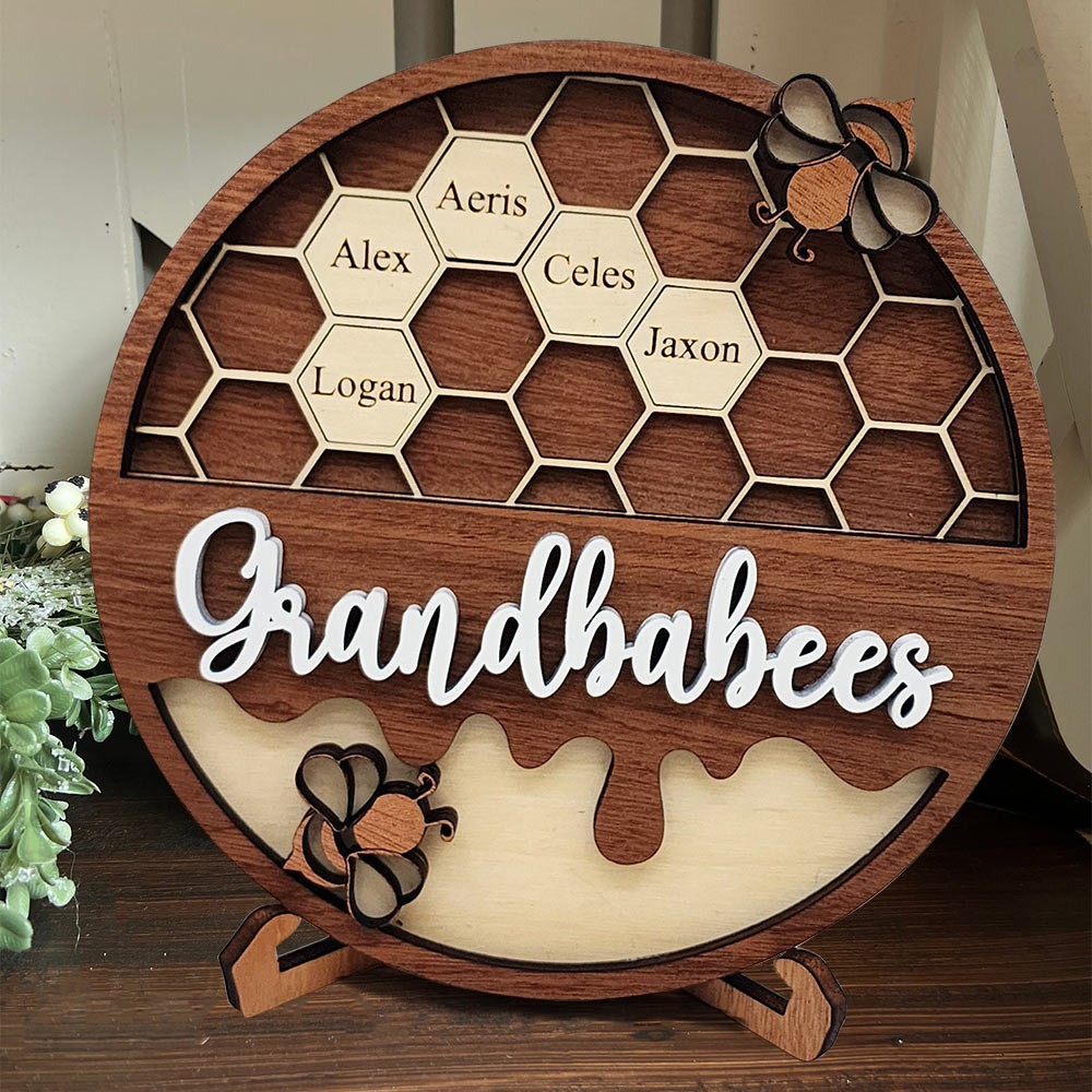 Personalised Bee Hive Family Tree Wood Sign with Kids Names Family Keepsake Gifts Christmas Gift Ideas