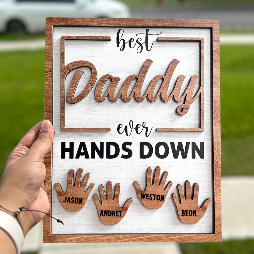 Personalised Best Daddy Ever Hands Down Sign WIth Kids Names Best Father's Day Gift