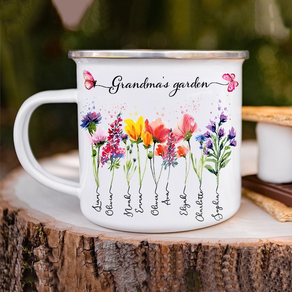 Personalised Birth Flower Coffee Mug with kids Names for Mimi