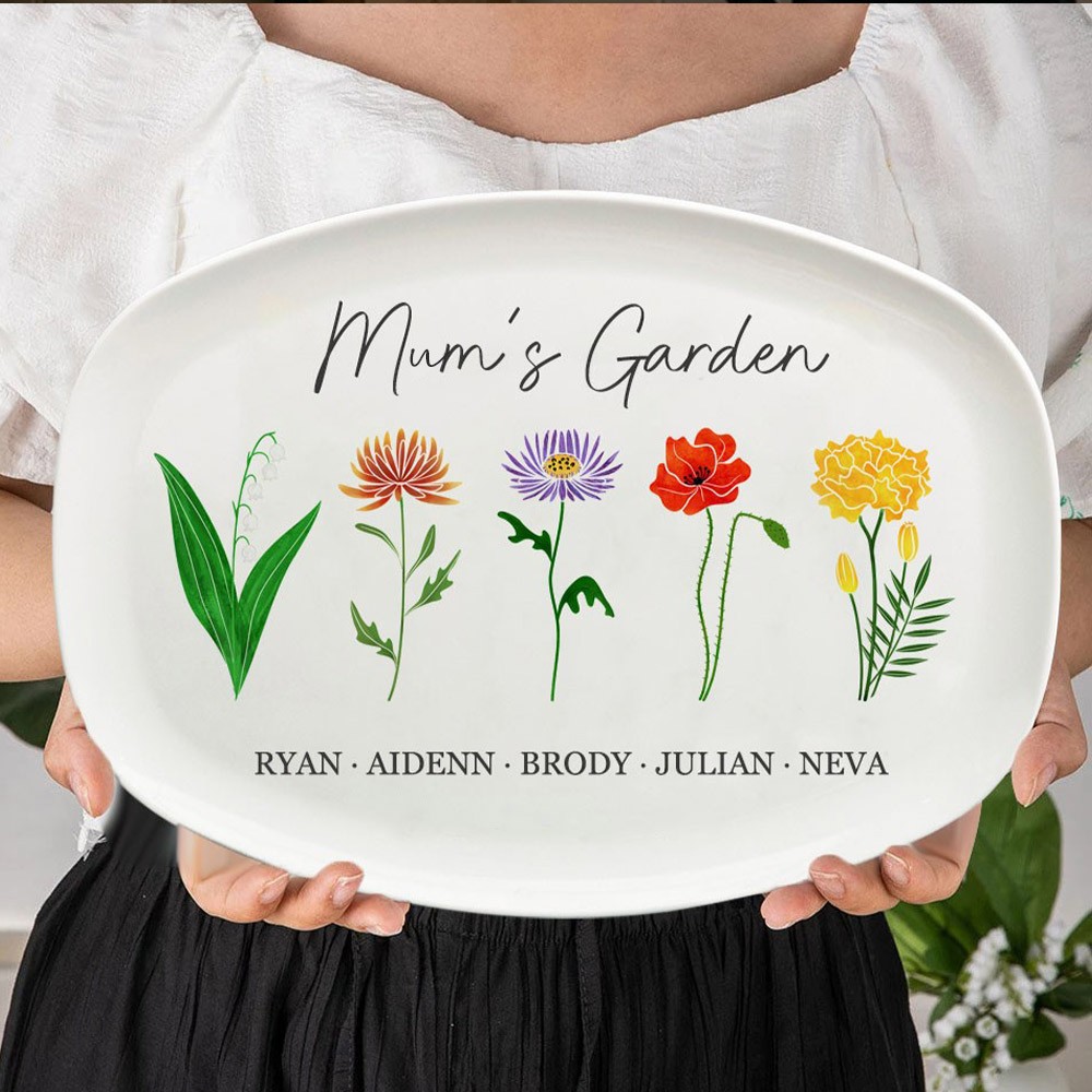 Personalised Birth Flower Platter for Mum
