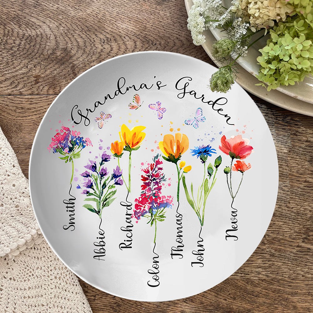 Personalised Birth Month Flower Family Platter with Kids Names Unique Gifts for Mum Gramdma Mother's Day Gift Ideas