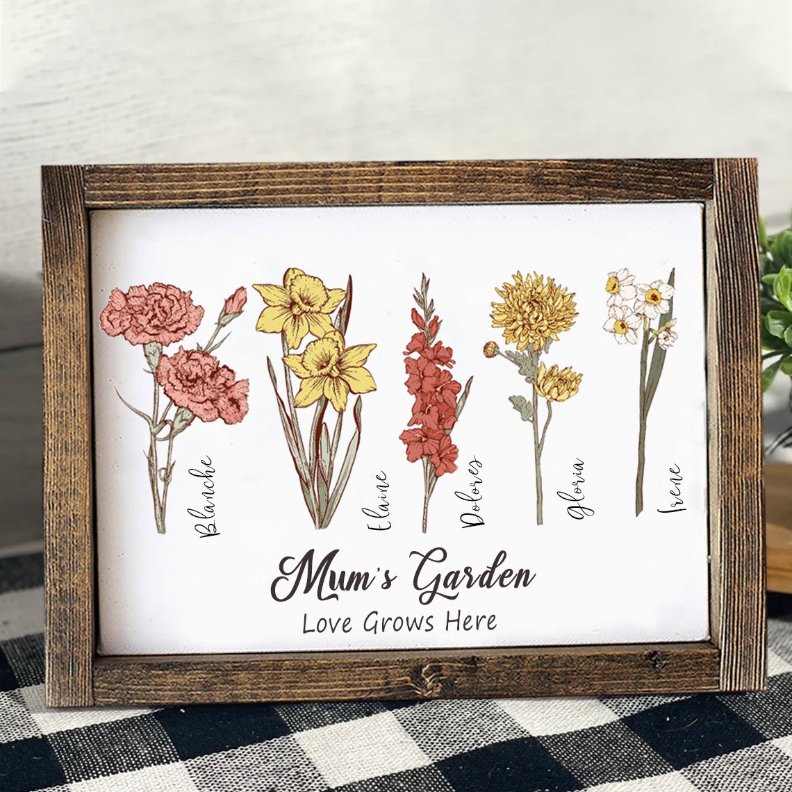 Personalised Birth Month Flower Wood Frame Sign with Kids Names Gifts for Grandma Mum Mother's Day Gift ideas