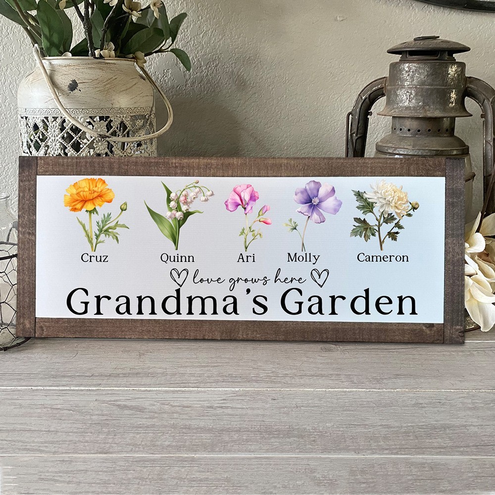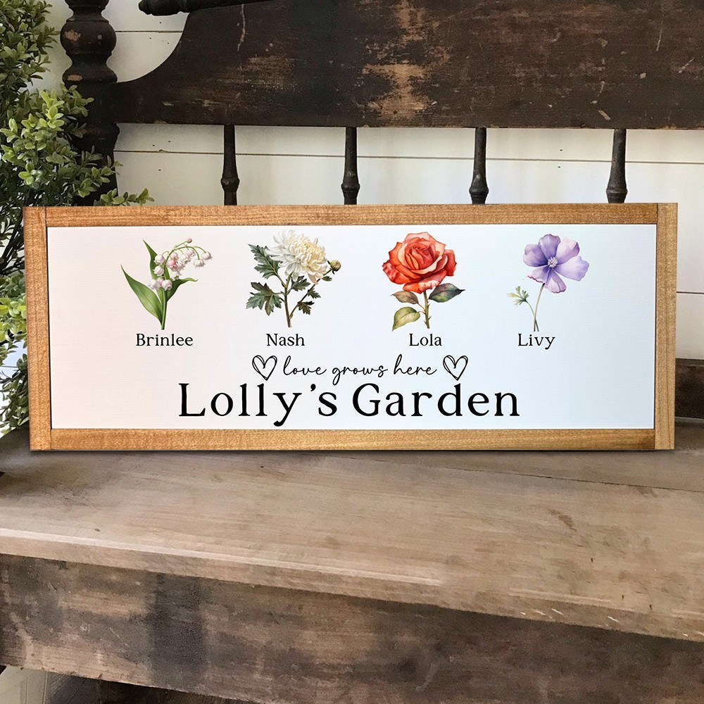 Personalised Birth Month Flower Wood Frame Sign with Kids Names Keepsake Gifts for Mum Grandma Mother's Day Gift Ideas