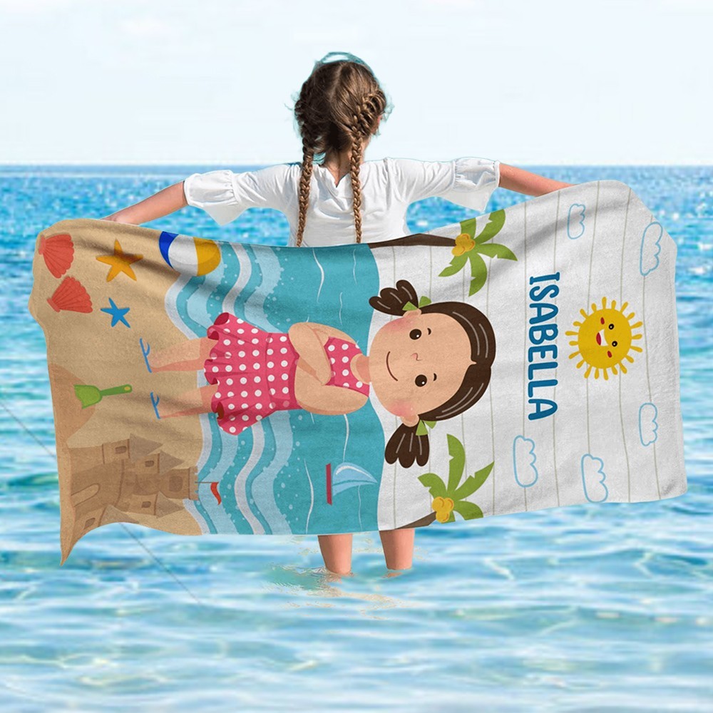 Personalised Cartoon Character Beach Towel with Name for Kids Summer Vacation Gift for Boys Girls