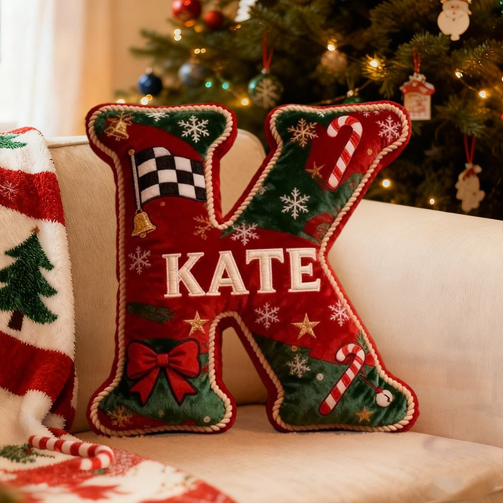 Personalised Christmas Racing Letter Pillow with Custom Name Festive Car Themed Holiday Gift Christmas Gift