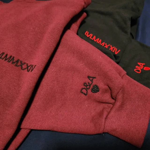 Personalised Couple Roman Numeral Embroidered Hoodie Sweatshirt Love Gift For Girlfriend Boyfriend
