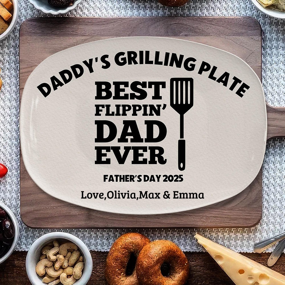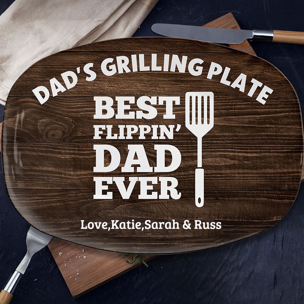 Personalised Dad's Grilling Plate "Best Flippin' Dad Ever" Platter Custom BBQ Platter With Kids Names Gifts for Dad Unique Father's Day Gifts