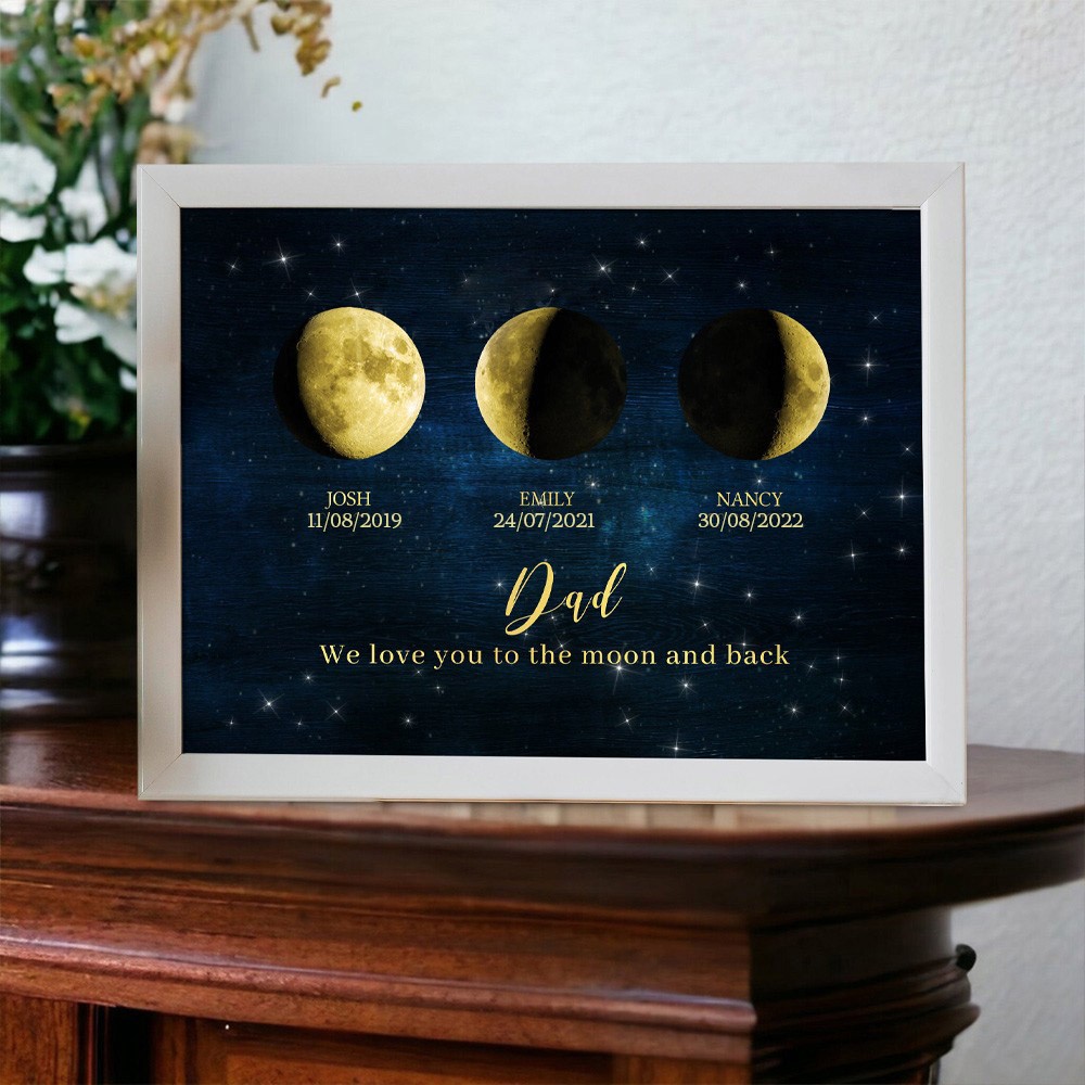 Personalised Dad Starry Sky Moon Phase Print Frame Meaningful Family Gifts Father's Day Gift Ideas