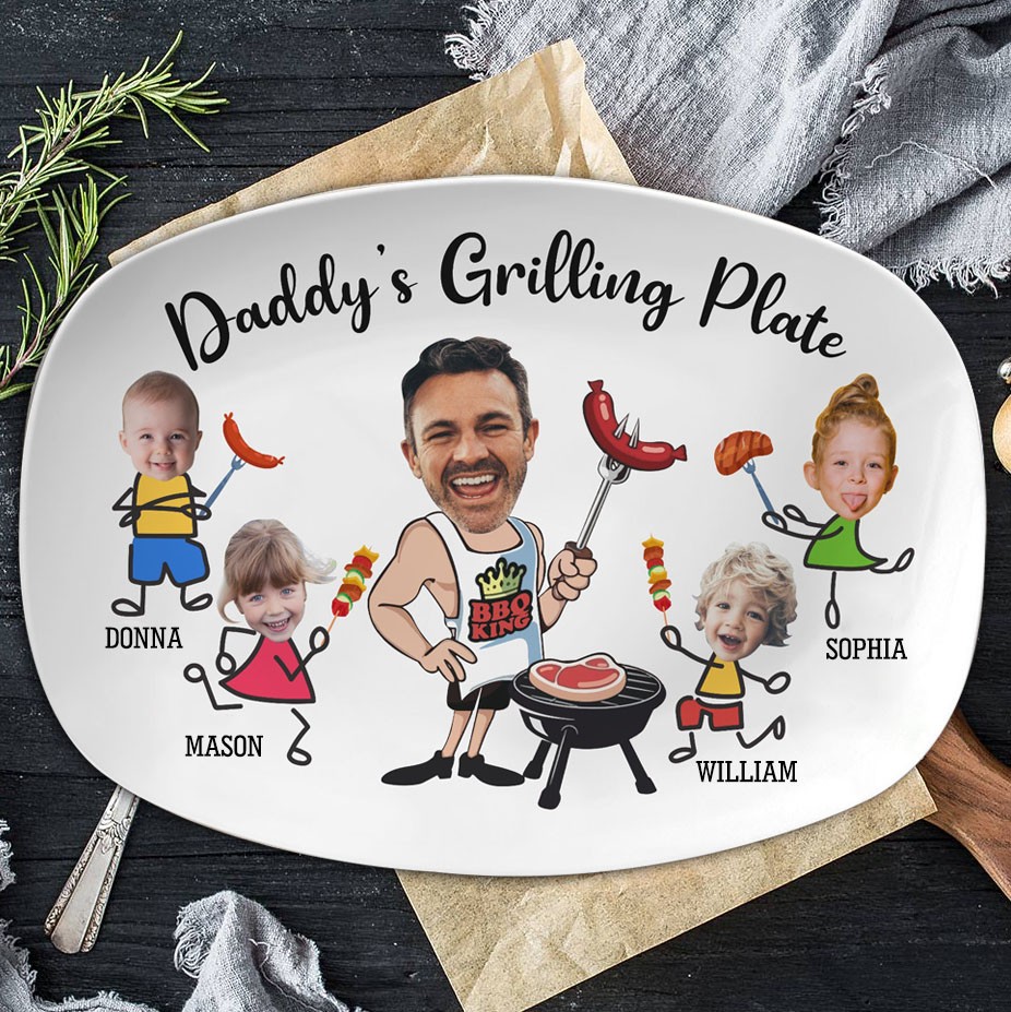 Surprise Dad with our Custom Daddy's Grilling Plate adorned with the names of his kids—a thoughtful Father's Day gift that celebrates his love for BBQ and adds a personal touch to his outdoor cooking adventures.