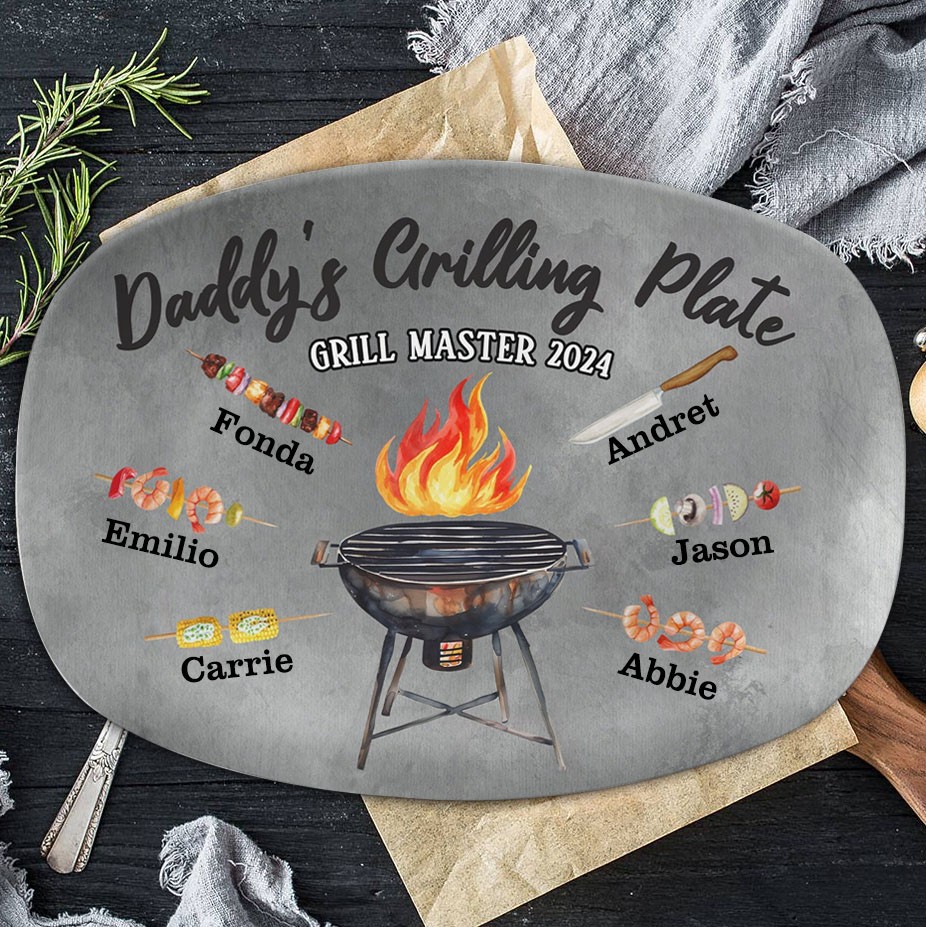 Personalised Daddy's Grilling Plate with Kids Names Custom BBQ Platter Unique Father's Day Gift Ideas