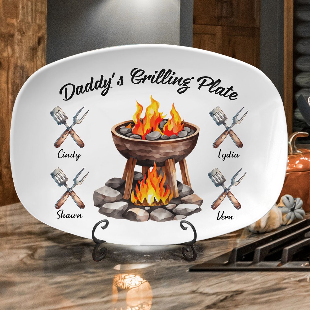 Personalised Daddy's Grilling Plate With Kids Names Keepsake Gift For Dad Father's Day Gift Ideas