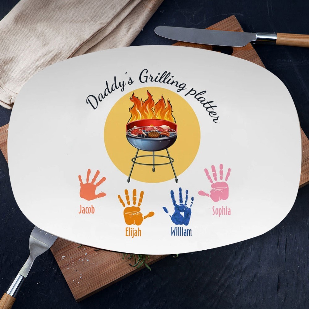 Personalised Daddy's Grilling Platter With Handprint Father's Day Gifts