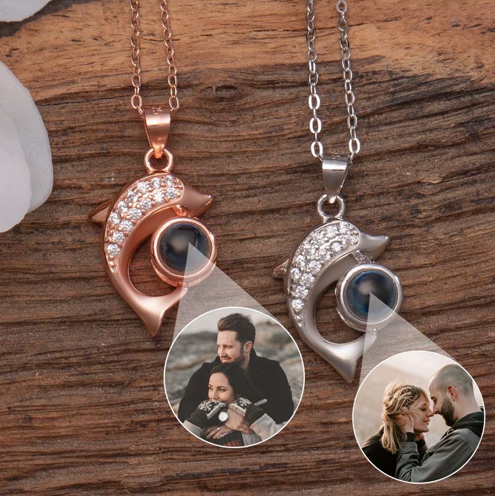 Personalised Dorphin Shaped Photo Projection Necklace With Picture Inside Unique Keepsake Gift For Couple